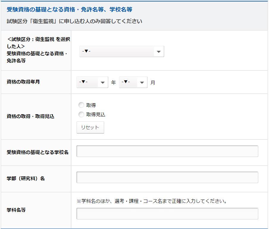 - 試験区分:衛生監視に申し込む人のみ回答してください。
