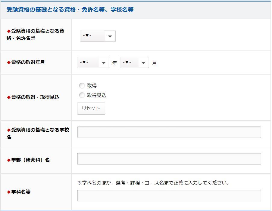 資格・免許等の取得状況を選択してください。 - 受験資格の基礎となる学校名